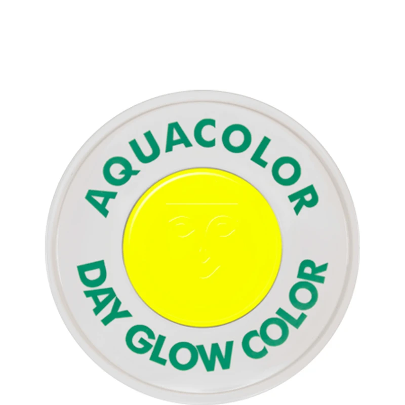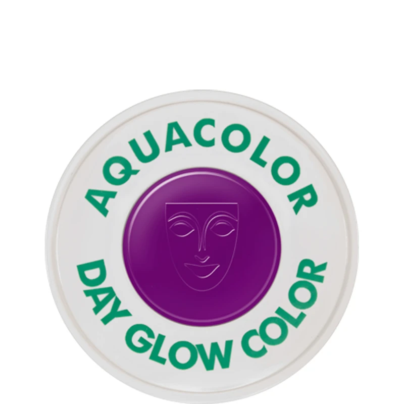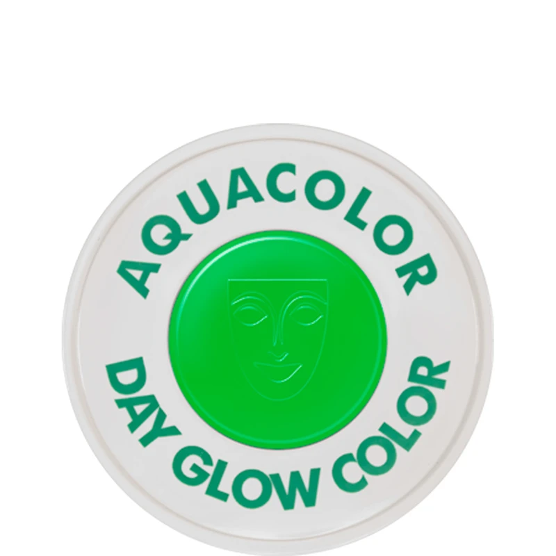 Aquacolor UV-Dayglow è un colore ad acqua privo di grassi. Con un contenuto di pigmento di circa il 50%. Aquacolor UV-Dayglow è particolarmente intenso e brilla già sotto le normali condizioni di luce. Universalmente applicabile, per esempio su abbigliamento o su scarpe, può anche essere utilizzato per effetti calvizie e per maschere per ottenere effetti di luce sotto la luce nera. L’applicazione è facile sia con una spugna inumidita che con un pennello sintetico. Quando il prodotto è asciutto può essere lucidato delicatamente con un asciugamano morbido o con la mano. Qualora il trucco dovesse esser sottoposto a sollecitazioni estreme si consiglia l’uso di uno spray fissante. Aquacolor è resistente al tocco ma può essere facilmente rimosso con acqua e sapone. Questo prodotto contenente speciali pigmenti fluorescenti è classificato come prodotto per effetti speciali e non per uso cosmetico. Il pigmento UV non risulta infatti inserito tra i pigmenti riconosciuti cosmetici dal parlamento europeo e tedesco. L’aquacolor UV è stato però testato con successo in un ospedale universitario per garantirne la sicurezza.