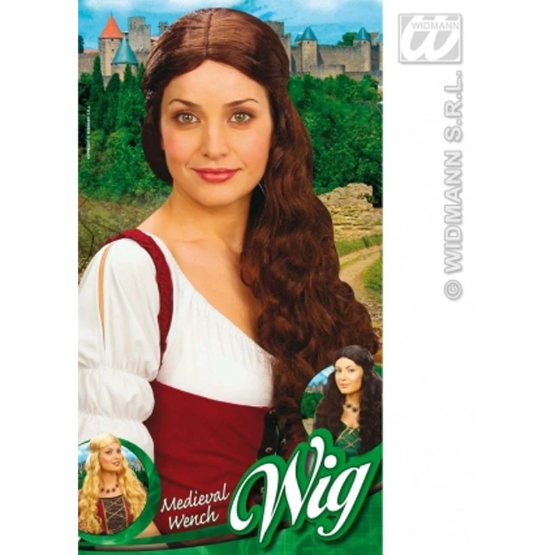 Parrucca modello DAMA MEDIEVALE con riga centrale senza frangia con capelli lunghi fino al seno mossi con due treccine laterali riprese dietro la nuca. Disponibile in 3 colori differenti: Biondo grano, Castano scuro, Nero. Non piastrabile ne fonabile. Media qualità. Misura unica. (SPECIFICARE IL COLORE DESIDERATO NELLE NOTE IN FASE D’ACQUISTO).