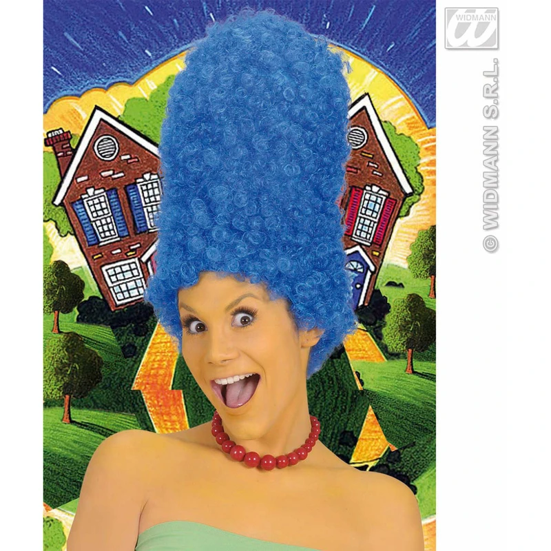 Parrucca modello marge simpson con forma cilindrica alta riccia color blu elettrico. Non piastrabile ne fonabile. Media qualità. Misura Unica.
