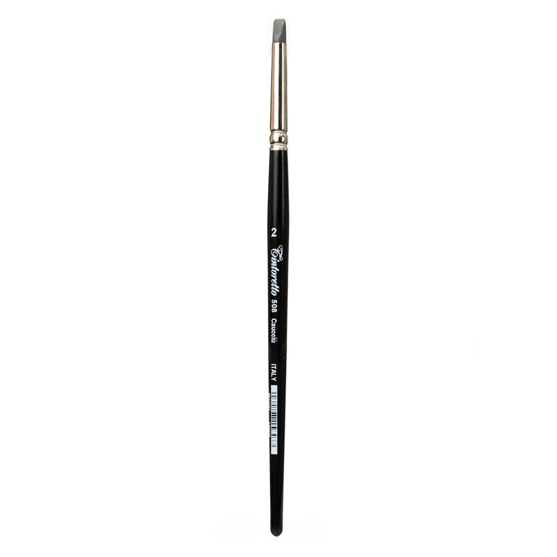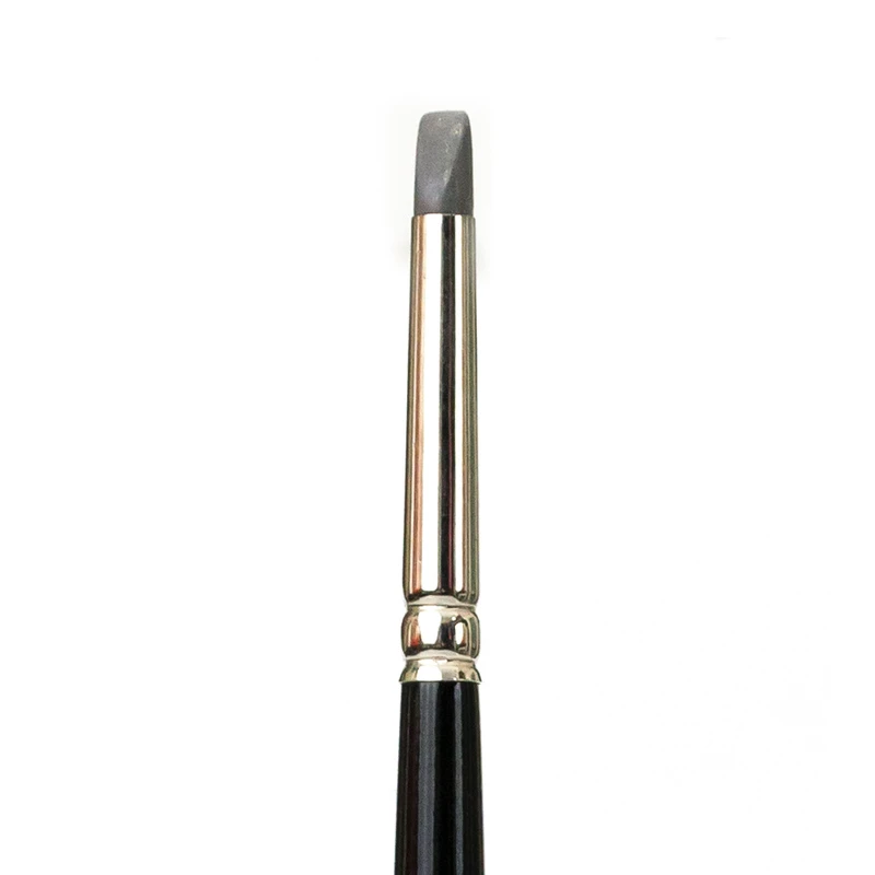 Pennello a scalpello, caucciù. Manico corto di legno verniciato nero.