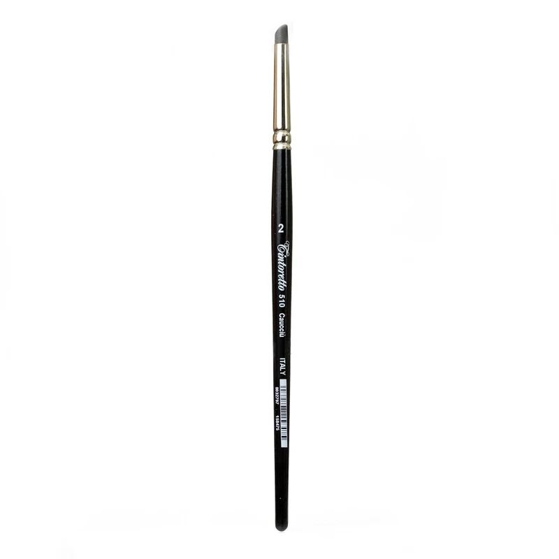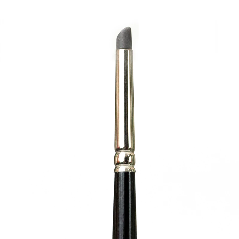 Pennello a taglio angolare, caucciù. Manico corto di legno verniciato nero.