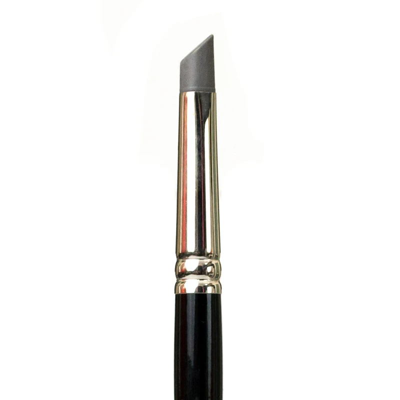 Pennello a taglio angolare, caucciù. Manico corto di legno verniciato nero.
