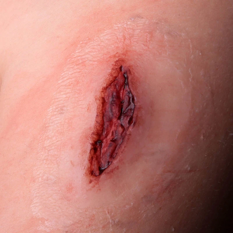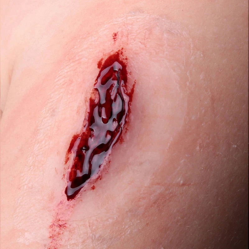 3.Se si vuole applicare il sangue all’interno della ferita, si consiglia il sangue della P.P.I. Fresh a base d’alcool per eseguire una ferita appena avvenuta, dark se si vuole una ferita avvenuta prima.