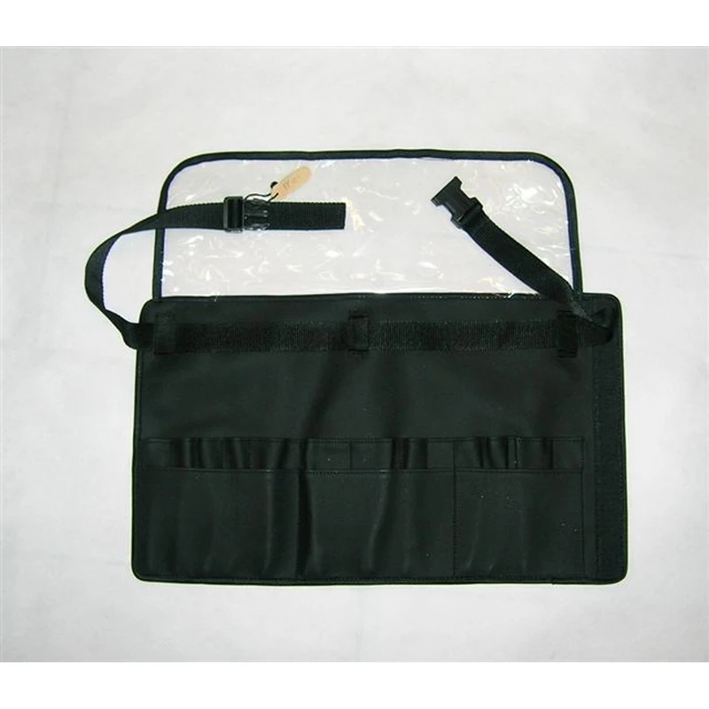 Cintura porta pennelli, materiale plastico, colore nero. Prodotto pensato per professionisti del settore. Dotato di tanti scomparti dove riporre con ordine tutti i pennelli e gli strumenti per il make-up. Dotato di una copertura in plastica trasparente a protezione degli accessori. Dimensioni 60×29.