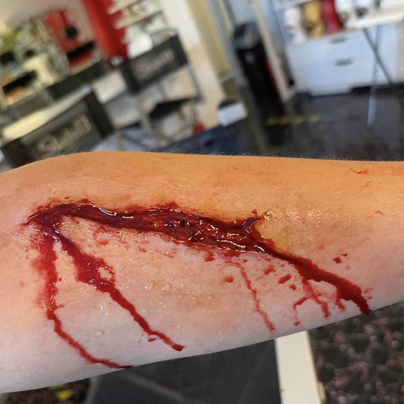 3.Se si vuole applicare il sangue all’interno della ferita, si consiglia il sangue della P.P.I. Fresh a base d’alcool per eseguire una ferita appena avvenuta, dark se si vuole una ferita avvenuta prima.